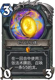 巨龙之魂倒是曾被不少人寄以厚望,平心而论,这是一张不错的武器牌。首先3费的费用并不算多,而且不消耗耐久只要有机会就能召唤5-5龙族白板随从,效果不错。不过在牧师手中,不过是宇宙牧、大哥牧还是龙牧,卡组成熟、卡为紧张,都不需要再加入这张召唤巨龙的武器卡。如果给到其他职业,或许还能大有所为。