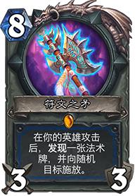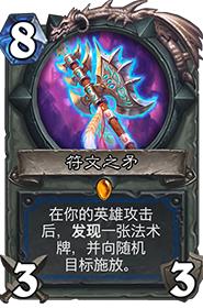 和萨满的符文之矛有些类似,高费加不稳定。不过,由于招募是自己牌库里的大哥,所以通过合理的构筑,这张卡也曾在版本初期大哥战中发挥过一定的作用。然而随着环境的变化,大哥战的强度逐步开始弱化,这把武器在其他的构筑中并不合适,所以出场率也逐渐下降。