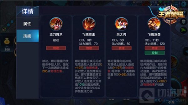 娜可露露的被动流刀舞术是个很好的输出被动,配合三段技能释放,一套可以打出很可观的伤害;一技能飞鹰攻击是娜可露露的主要输出技能,配合被动技能触发标记,可以在切入敌方后排时游刃有余;二技能风之刃是娜可露露的生存技能,击中敌人回复血量的特性,让其成为团战中功效很大的技能;大招飞鹰急袭,瞬间的高爆炸伤害,而且附带加速,是团战突进和逃跑时的首选技能。