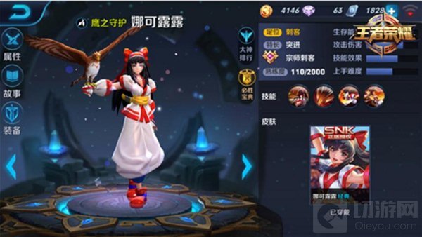 技能连招:第二段大招→普攻触发被动→飞鹰攻击→普攻触发标记,触发被动→风之刃突进→普攻→飞鹰攻击→普攻(这时候娜可露露的飞鹰攻击冷却应该好了),一颗人头收入囊中!