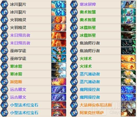 卡组的主要思路就是利用红宝石、雕文、蒸汽涌动者给的法术,配合魔网操控者减费,打出节奏。并留下一些低费,最好是0费的法术,配合安东尼刷一波,最后靠火球慢慢轰死对手,如果还多留一个魔网操控者,10费的时候还可以有魔网+3火球18点斩杀。