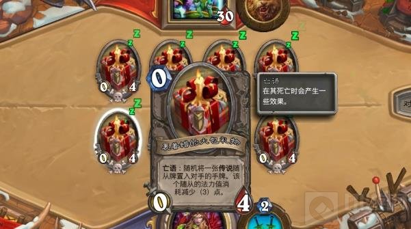 双方各获得四个宝箱,和马林那个宝箱一样,打爆对面的宝箱自己就会获得有益的牌,只要打破对面宝箱就会获得传说卡牌,并且全部减3费。