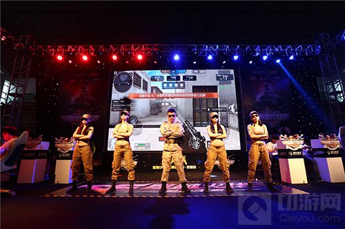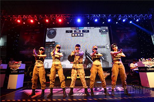 而在开场惊喜外,比赛过半时还有COSer热舞表演为大家助兴,伴随着场上动感的音乐,身着迷彩服的四位美女和一位帅哥登场,为大家带来了激情的舞蹈表演,再配合舞台大屏幕上出现的激烈枪战画面,让赛场的每个人都沉浸在手游电竞的炽热氛围中。