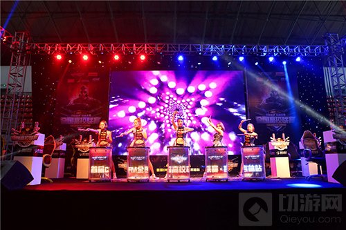在比赛正式开始前,举办方就为现场玩家带来了独具特色的水鼓表演,台上的美女们优雅的敲击着鼓面,四溅的水花和充满节奏感的鼓点瞬间带动起现场气氛。