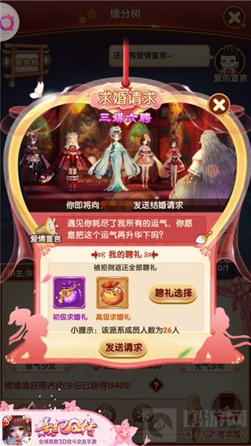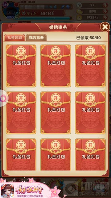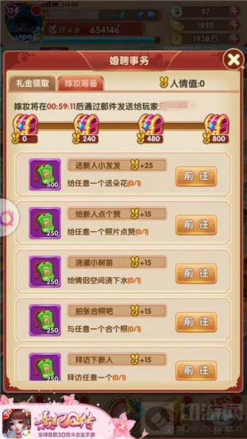 在派系左上角的“婚聘事务”中,派系众人即可看到小两口为大家派送的礼金红包了。同时,为了表示对两位新人的祝贺,众人也可以作为“娘家”,通过“嫁妆筹备”为新人送花点赞、合影拜访,在自己获得帮贡值的同时,向恩爱夫妻送上真挚祝福!