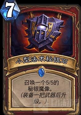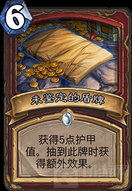 三张未鉴定卡全部上榜(上一张是前篇文章提到的未鉴定的药水,下一张是即将介绍到的未鉴定的重槌),可见未鉴定卡的实力。抽到这张牌后,能额外获得一个效果:获得10点护甲值、造成5点伤害、召唤一个5/5随从,或是装备一把5/2武器。除了获得护甲外,其他都有着不错的表现(可以横向对比盾甲侍女和神圣之火)。能在保护英雄的同时,起到多种压制效果。