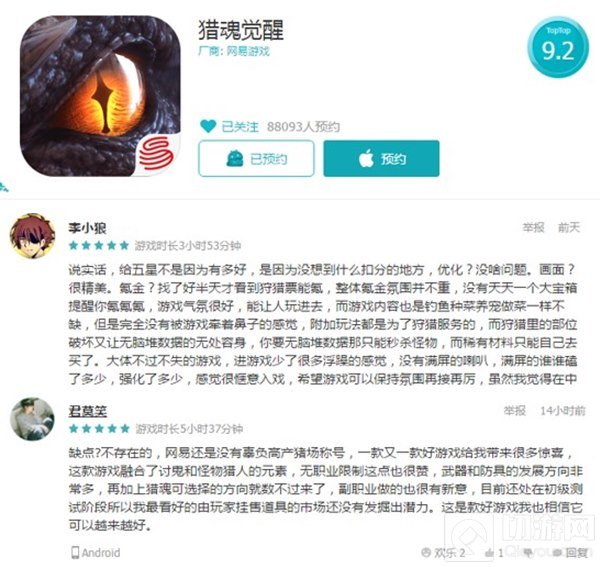 网易3D团队狩猎手游《猎魂觉醒》最终试炼测试已于12月22日开启,此次安卓不限号测试一开测便人气火爆,TAPTAP上也是高达9.2的高分,近千名玩家打出了5星好评,口碑爆棚。