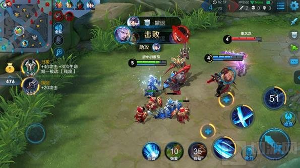在四级之后,铠具有极为强势的GANK能力,铠的一、二技能拥有极强的回复能力,在与队友发起GANK时,可以利用二技能进行突进,对目标进行连续挥砍,第二刀将敌人击飞之后,配合大招强化自身攻击力对敌人造成消耗,若是敌人想要逃走,铠可以释放一技能对敌人造成减速,并在技能释放时衔接普攻,轻松将敌人击杀。