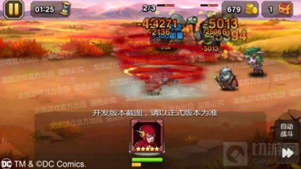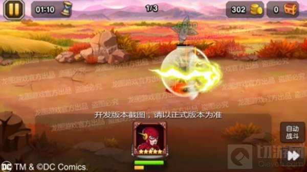 2.风驰电掣——闪电侠作为中排切入型英雄,利用速度进行闪避敌人的攻击,并穿透到敌人后方进行背后进行攻击,被穿透的敌人周围的所有敌方单位会降低攻击和移动速度,让闪电侠从容的进行攻击。闪电侠攻击质量也非常了得,前排被击中的敌人会被打退后排,并伴有眩晕,闪电侠会乘胜追击继续追打该目标,闪电侠的闪避与优秀的出击能力,将给敌人带来困扰。
