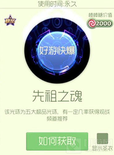 五大极品光环之一,佩戴有一定几率获得观战频道推荐,价值2000棒棒糖,开启奇妙宝箱有机会获得,无法在魔法屋直接购买,获得后可永久使用。