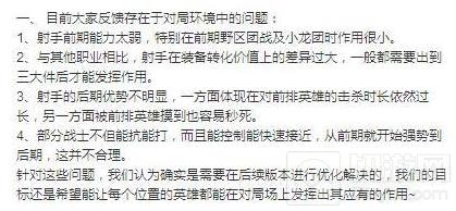 目前收集的4个问题是上述几个,说实话都比较有道理,但是第一个我觉得不是什么大问题,大部分moba游戏中,射手前期都是作用不大的,关键是后面的几个问题太严峻,你前期当了孙子,装备起来了还是孙子,这就让所有玩射手的人不爽了。