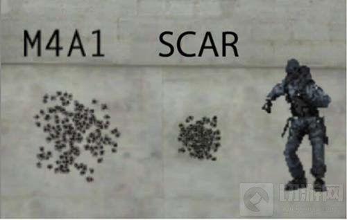 为了更直观的看出SCAR的精度,我们直接看它和M4A1的精度对比: