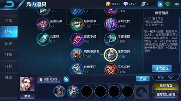 痛苦面具能够为甄姬增加一定量的法术攻击,让甄姬的技能伤害变得更加恐怖,而且还会减少甄姬技能的冷却时间,让甄姬可以更加快速的释放自己的技能,痛苦面具也能够为甄姬提供一定量的法术穿透效果,可以让甄姬的技能对敌人造成更高的伤害,即便面对坦克英雄,也是如此,当甄姬的技能命中敌人之后,借助痛苦面具的被动效果还可以在一段时间内对的敌人造成非常恐怖的持续法术伤害。