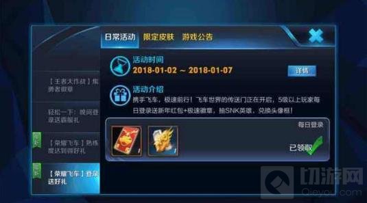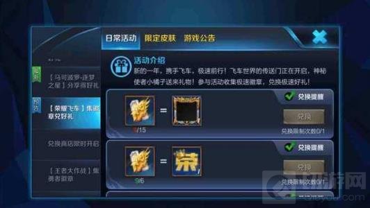 收集极速徽章,在1月5日之后可以兑换头像框,同样也可以兑换“荣”“耀”“飞”“车”四个字的礼包。