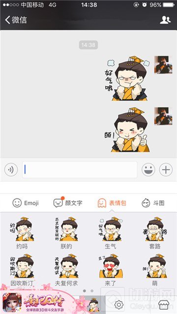 再次打开任意聊天界面,切换至搜狗输入法的表情功能,就可以看到我们皇帝哥哥萌萌的头像,此时小主们就可以在编写短信的时候,快捷输入表情包啦,赶紧一起进入《熹妃Q传》宫廷聊天新世界吧!