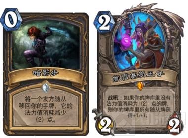 二王子套路强大之处在于能让整个牌库随从获得1/1buff,变相增值一费。且相比德鲁伊的成长更为强大的是:成长只是每一个回合赚一费,二王子套路是每一张随从卡赚一费,顺起来,一回合可以赚你3费左右,还都是赚在场面上;这是一张王子,有暗影步的情况王子回手0费再下,全牌库随从就加了2/2,如果再一张暗影步就是全牌库buff3/3,火羽精灵4/5,军七6/6,龙人8/8………………这TM谁解得过来,但是这样极限情况难度极大。变态指数4颗星。
