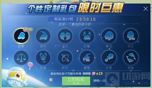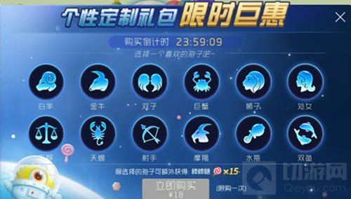星座孢子一共有12个,活动只能购买一个,每个18元,可以用RMB直接购买,购买成功后还可以获得15个棒棒糖!