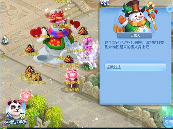 欢乐堆雪人、调皮小精灵、雪球大战、冰封雪魄、冰雪强盗、冰雪试练、烟花贺元旦,《神武3》手游新年狂欢火爆进行,七大活动引爆冬日激情,邀请全网玩家尽享冰雪奇趣。全服玩家大联合同心协力捡拾材料,共享雪人完工的喜悦;与好友相约雪球大战,来一场公平公正的雪球狂欢……足不出户体验这些妙趣横生的休闲活动,尽享冰雪狂欢活动。
