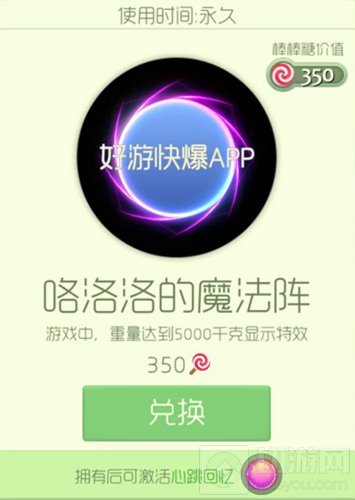 拥有洛洛洛的魔法阵以后可以解锁心跳回忆哦。玩家在游戏中体重倒到5000千克的时候会显示光环效果,球宝会披上洛洛洛的魔法阵的衣服!