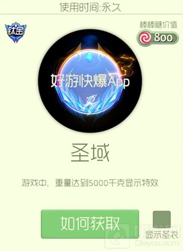 圣域光环看上去像守护着一颗宝石,有着神奇的力量。游戏中重量达到5000千克的时候限时特效,周围会有一些光影特效!