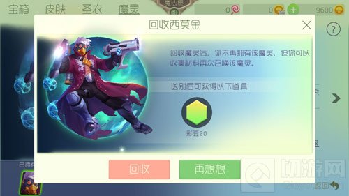 魔灵还可以回收哦,点击回收按钮会兑换对应的材料或者道具,不过现在刚出,小编还没玩够呢,肯定舍不得回收的,下面我们看看西莫金在游戏中的效果吧!
