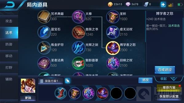 回响之杖以及博学者之怒都着重于提升女娲的法术攻击力,将其输出能力在游戏的中期最大化的发挥出来。同时女娲的二技能所创造的矩阵持续时间受法术攻击力的影响,法术攻击力的加成将延长矩阵的持续时间,变相的加强了女娲的控场能力,无论是追击亦或是逃跑都能发挥不俗的作用。
