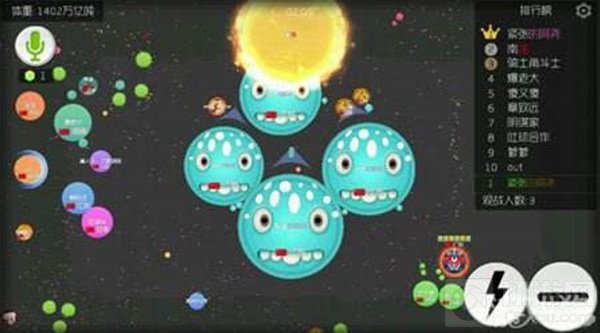8、看到你的比较大的队友队友正在被比他大一点的球追杀,这是不管你多大 都要给他球(如果比草丛大要吃草丛然后把小分身撞到他身上)当然如果队友脱险后讲义气的话会吐球给你的~(我就是那样的人)