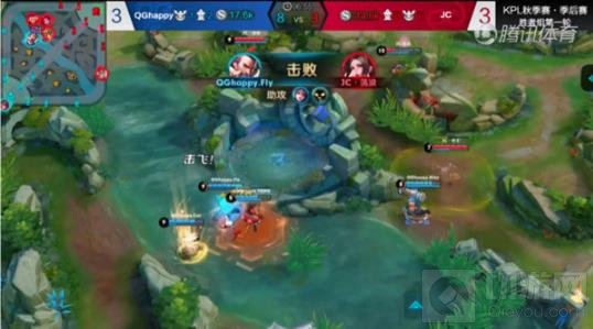 百里玄策等人想来反蓝的时候,却被貂蝉等人发现,于是双方又爆发了一场战争,这时候正在野区的曹操迅速赶往支援。曹操直接用一技能一段穿墙、二段追击,并用三段成功击飞了百里玄策,但是因为鬼谷子及时赶到并释放大招,所以大残百里玄策在进入伪装状态后迅速撤退。于是曹操等人转攻不知火舞,当不知火舞想利用自己的高机动性逃跑的时候,曹操果断释放二技能将其减速,在队友的配合下将其击杀。接着曹操在帮助貂蝉拿完蓝BUFF后迅速赶往上路清线,稳定自己的发育。