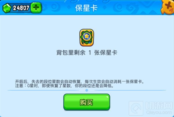 在进入巴巴六的对决,在点击进入游戏之前能够选择是否使用保星卡,保星卡开启后,能够使市区的段位星数自动恢复,每次生效会自动消耗一张保星卡,即保星卡能在玩家失败的时候减免因失败而造成的损失。但是需要注意的是,当星数已经降低至0时,即时使用保星卡恢复,段位也仍旧会降低,所以请大家谨慎使用!