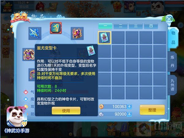 全新变身卡实力、颜值双丰收,全新造型卡让宠物变身蚩尤、虎女,在享受拉风造型的同时更迷惑敌手、打乱节奏,成为逆转战局的有力力量。在高端PK中,有经验的战术指挥可以根据出场宠物完美做出预判,而蚩尤、虎女变型卡的出现将打破惯例。不管是威武霸气的变异龙虾,还是实力雄厚的仙兽翼龙,使用全新变型卡变身蚩尤、虎女,成功迷惑对手,让对其无从下手。