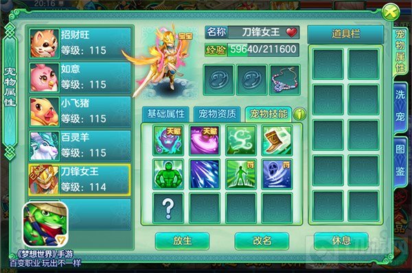 在每次战斗前,刀锋女王可融合任意一只宠物的基因,获得该宠物的一个天生天赋!融合后刀锋女王的转基因天赋立即消失,而被融合的宠物也会同时消失无法找回。