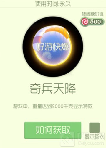 开启奇兵天降主题礼包可以获得,价值800棒棒糖。
