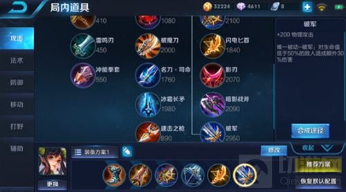 破军带来的高额物理攻击加成,使孙尚香的输出伤害有效的提升,而且破军的被动效果也可以让孙尚香攻击血量较低的敌人时,能够让自己对敌人造成更高的伤害,使孙尚香可以更加轻松的击杀敌人。