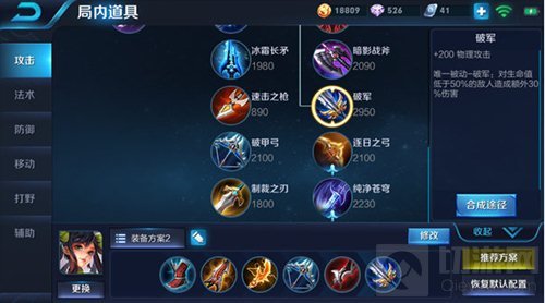 冷静之靴、无尽战刃、闪电匕首、破甲弓、泣血之刃、破军
