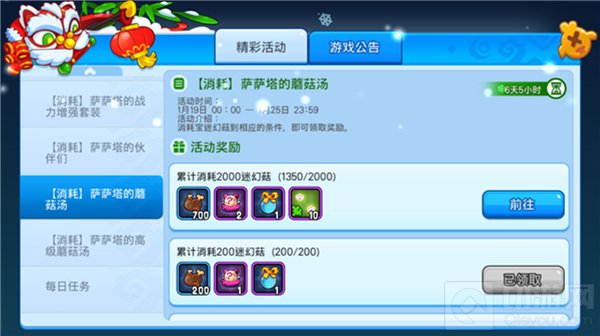 消耗活动萨萨塔的蘑菇汤与高级蘑菇汤的参与方式十分简单,只要在活动期间累计消耗一定数量的迷幻菇达到相应的条件即可领取奖励。奖励将随着消耗迷幻菇的数量增多而变得更加丰富,除了脚印碎片、摩摩可的宠物箱与萨萨塔的泡泡球,还将送上数以百计的烤鸡,玩家能够通过使用烤鸡在烤鸡店中换取心仪的宠物碎片!