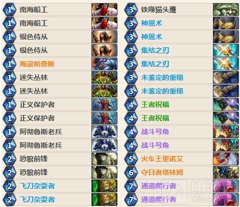 卡组特点:选择单猫无橙武配置,1是因为个人觉得快攻骑武器已经饱和了,不需要更多武器;2是沉默当然是费用越低越好,反正你又不靠它打人。