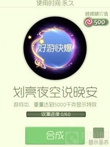 需要通过参加团战、迷雾危机获得划亮夜空说晚安碎片,收集60个即可合成,价值500棒棒糖。