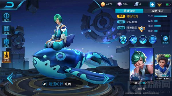 庄周在王者荣耀中的定位是一名辅助,同时也是坦克,生存能力很强同时也能为队友提供生存能力的英雄,当然伤害也不弱,下面和切游小编一起来看看吧。