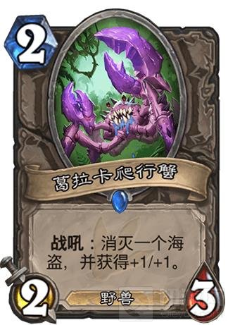 可以吃自己的海盗也可以吃节奏贼、快攻骑的海盗,唯一的问题在于这套卡能留出来的卡位并不多,螃蟹只能占用海盗的位置,建议加入一张。