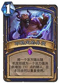 这是我们用来扩大场面优势的组件,除了6费的歹徒+异变之外,我们最经常用的就是不稳定的异变。关于这张牌,用法非常的灵活,需要跟大家特别说明一下。