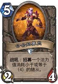 当然,也可以更后面的使用,5费召一个8费的大哥,以此类推。还可以配合我们的招募组件,5费的时候可以下一个6费的随从+一个477。
