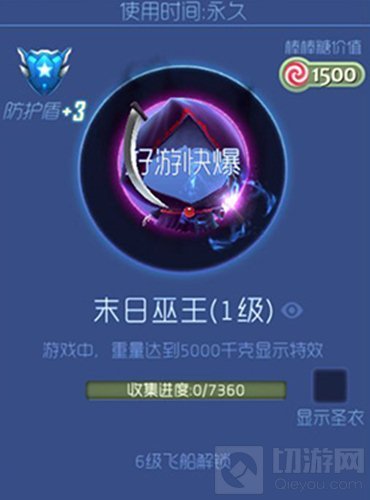 大逃杀太空舱光环,需要6级飞船才能解锁!需材料合成,无法直接购买,价值1500棒棒糖,获得后可永久使用,可升级提升防护盾。