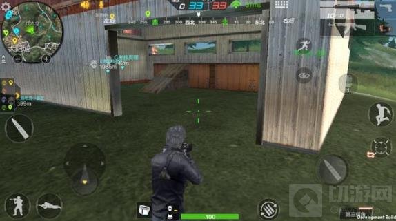 落地后看到地图上始终有盟军绿点位置,但仍只有小队队友有具体距离和名字显示,当然匹配也只能4人组队匹配。这位置四周全是友军,那么可以放心的搜房子了,敌人偷袭什么的不存在的,即使有个别敌人飞过来也肯定落地成盒了。