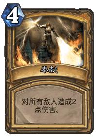 奉献说实话并不算太强的AOE,不过已经4年多了,历经了11个扩展包,骑士也没有其他能拿的出手的AOE法术了,这也让骑士的这张基础卡牌,继续站岗,依旧牢牢地占据着中慢速骑士卡组的位置,并通过与生平等卡牌的配合,为骑士“奉献”自我。