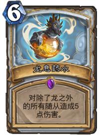 龙息术既是一张很强力的AOE,同时又是一张很尴尬的AOE,很多牧师应该都曾面对过在节奏铺场卡组5费压下深蓝龙人之后,6费解不掉的囧境。在牧师内战之时,因为龙牧数量不少的原因,这张卡也经常只能死死卡在手中难以发挥作用。