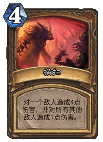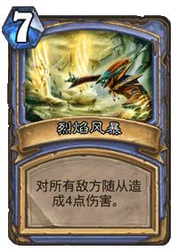 法师的AOE法术的招牌,资格很老,但依旧实用。呼啦最重要的就是简单直接,不管对手站多少随从,群体打4没得商量。不过随着新版本的随从越来越超模,玩家们也几乎都会防呼啦,这张高费AOE的登场率有所降低。不过烈焰风暴永远不可能退出历史舞台,暴雪调低了它在竞技场出现的几率就是最好的明证。