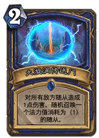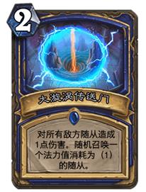 尽管如今萨满再次隐藏,但是都无法忽略大漩涡传送门的强势地位,对比奥爆让法爷的颜面尽失。闪电风暴虽然也是一个相当不错的低费AOE,但是它的伤害太不稳定,有时给对手留下好几个一血随从实在是让自己恨的牙痒。而大漩涡传送门则更稳定高效,还能召唤随从,仔细想想其他AOE,能够清场加返场的似乎也只有这张传送门了。