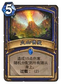 相比较烈焰风暴这种AOE,火山爆发更加地灵活和实用。首先,费用上就少了两费,可以在清场后再上随从站场,至于过载就是下回合的事了。其次,能有效解决更复杂的场面,比如烈焰风暴面对圣盾随从和随从血量高低搭配的场面很是无力,但是火山爆发则完全无视这个问题,算好血量总和就能全清。火山爆发的缺点在于不分敌我,所以注定了这是一张逆势翻盘卡,烈焰风暴则更倾向于稳住自己优势。