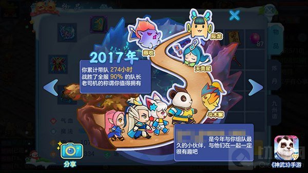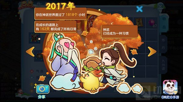 陪伴是最长情的告白,《神武3》手游2017年度回顾活动温暖上线,带给你不一样的感动和怀念。随着包括经验、修炼、在线总时长、最长连续在线、活跃的天数、带队时长、获得银币、一起组队最多的人、洗宠次数、打书次数、成就等各项趣味数据一一揭晓,《神武3》手游贴心记录下你的快乐足迹,通过时间的眼镜向前看向后看,精彩瞬间化作永恒回忆,让美好拥有更多可能性。