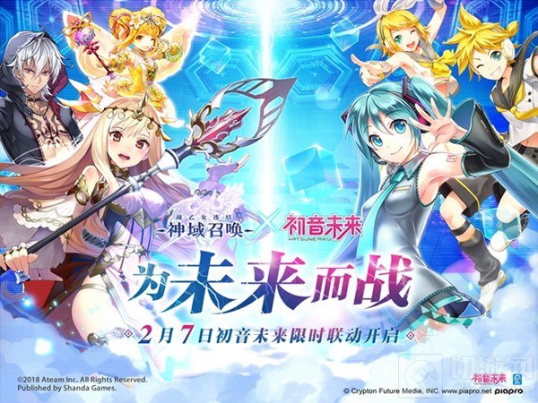今日,盛大游戏宣布携手新创华正式启动《神域召唤》联动企划第二弹,将于2月7日开启与初音未来的限时联动,初音未来、镜音铃、镜音连、巡音流歌将降临《神域召唤》,新角色女武神未来也将登场!各位勇士们,为未来而战!